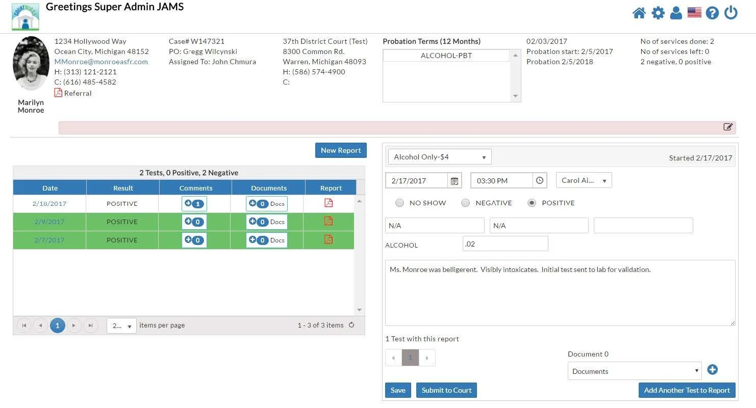CourtWorks provides a secure online account for managing referred offenders/probationers and easily provides results back to the Courts. The system provides the agencies efficiencies to save time and increase revenue; plus, making their programs more accessible to the Courts.